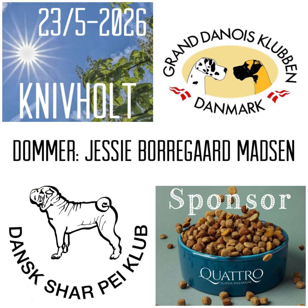 Dansk Shar Pei Klub afholder udstilling i Frederikshavn på Knivholt Hovedgård. Tilmelding på Hundeweb med sidste frist den 18. april 2026. Udstillingen starter kl. 10. Mere info følger senere.